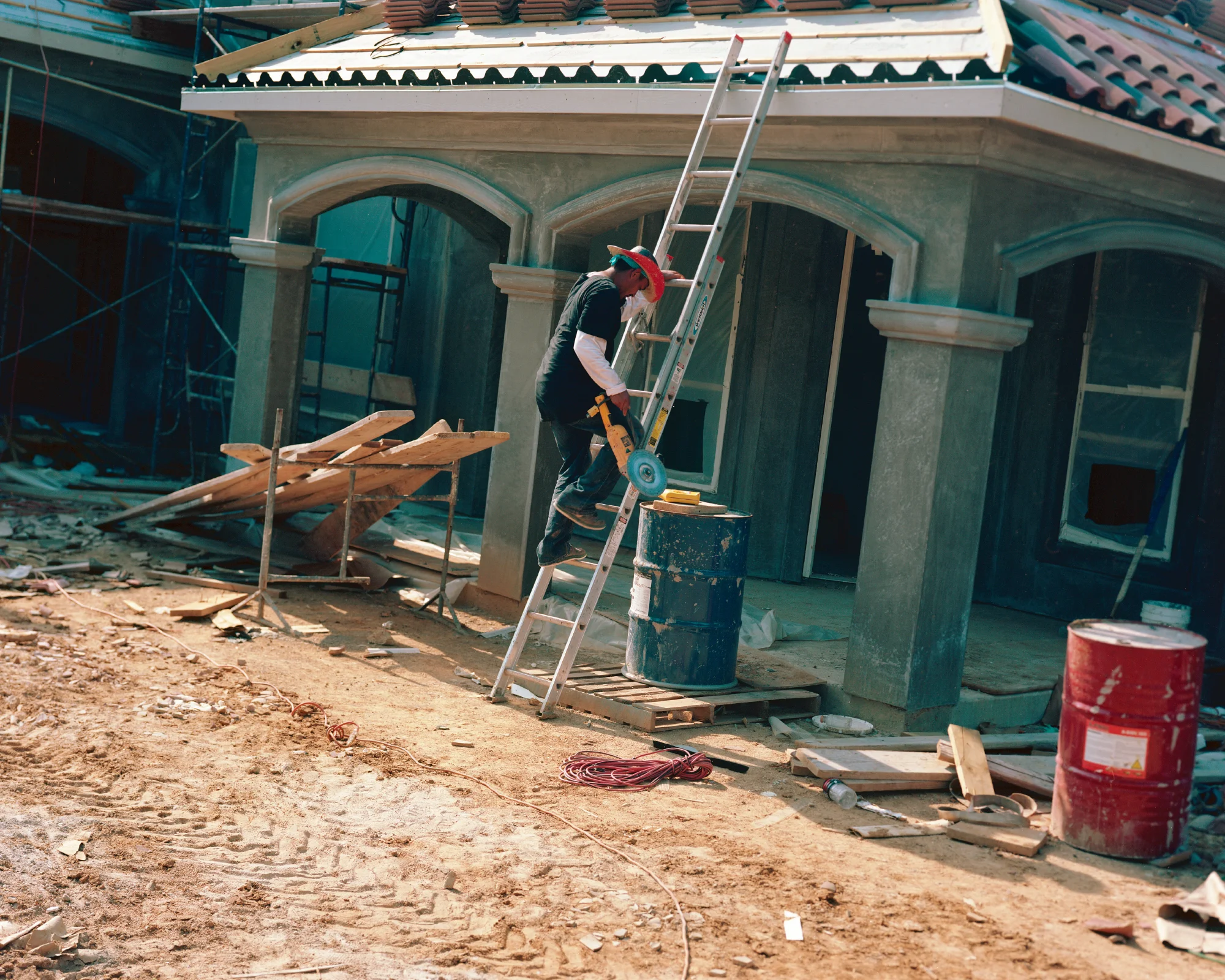 DRP: The particular images we're sharing today work a lot like a documentary project. They follow a group of construction workers amidst their day labor; painting, roofing, and working seemingly in well established neighborhoods. Could you talk about this work?