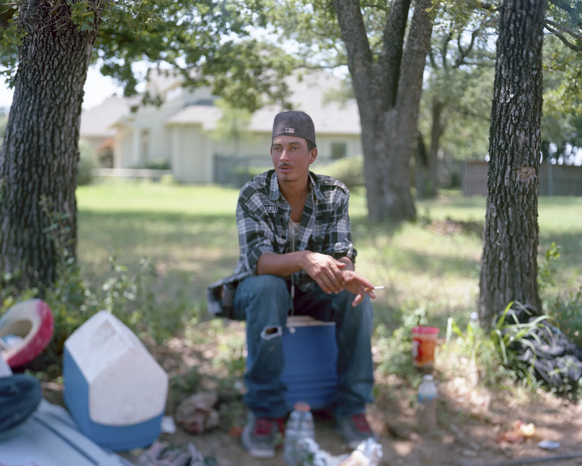 JMG: I knew quite a few of the roofers before I started. There were two I didn’t know, and they don’t appear in the project as it currently stands. That wasn’t totally deliberate. One of them told me he didn’t want to be included, and I was too shy to approach the other, whom I harbored a little bit of a crush on. I knew the others - Danny, Flaco, Bocho, and Choncho - from working with my brother, Elmer. Shortly after I dropped out of my first year of college in New York, I returned home - unemployed - and sought out Elmer’s help. I worked with them for three months to save money before I started school in Denton. So the project picks up a few years after that first term of employment.